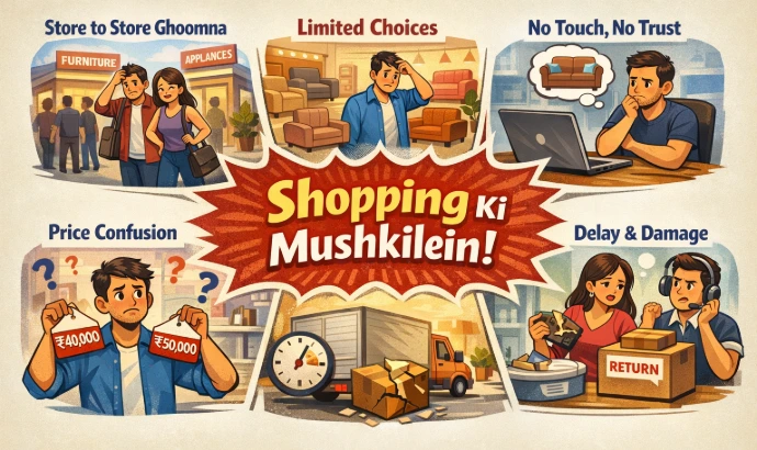 Furniture kharidne se pehle showroom me dekh lo, phir confidently decision lo.